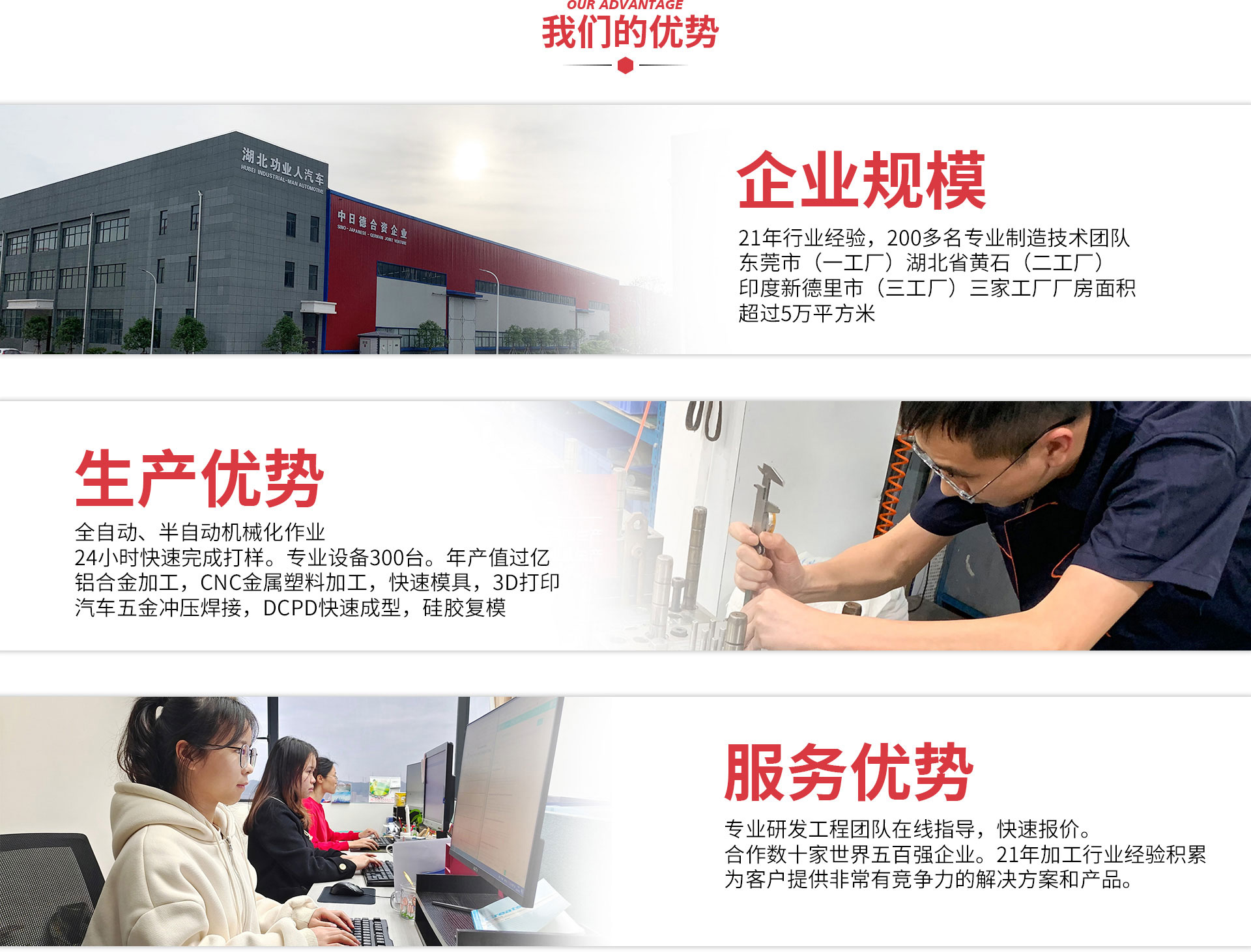 30豐富的代加工生產(chǎn)制造經(jīng)驗(yàn) 50000廠房占地面積 300+專(zhuān)業(yè)技術(shù)工人 500+先進(jìn)制造設(shè)備 10000+服務(wù)客戶(hù)